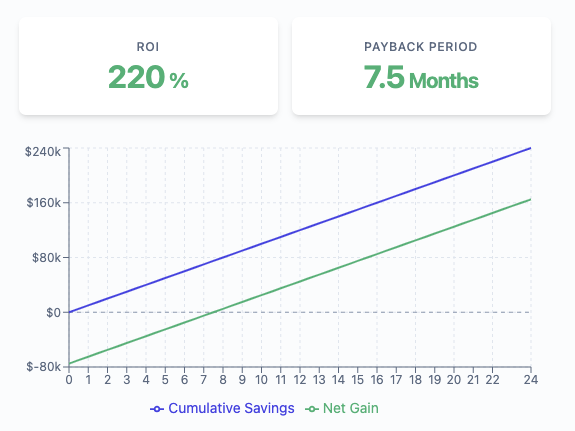 Just input your monthly operating costs, expected efficiency gains, and estimated implementation cost—and get back: