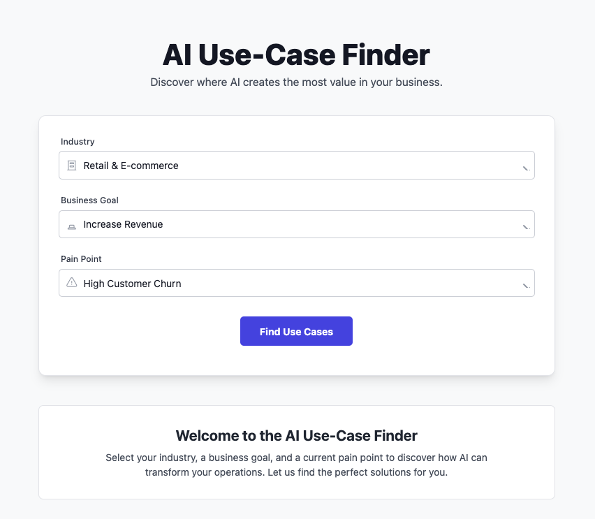 I created a free AI Use Case Finder that generates personalized AI application recommendations based on your specific industry, business goals, and pain points.