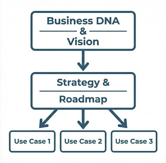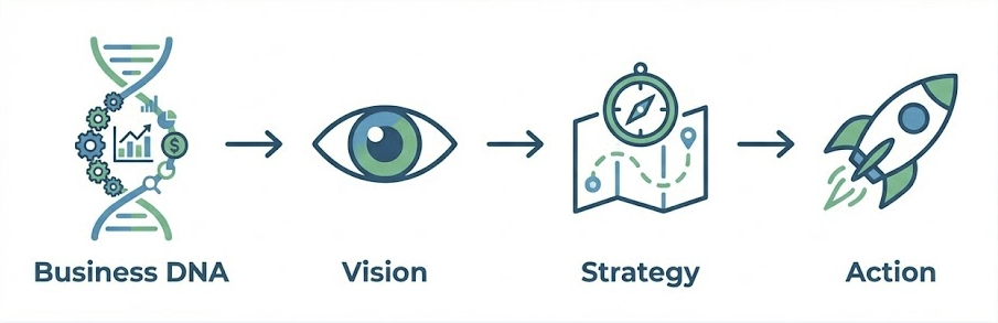 Your DNA determines which AI capabilities create competitive advantage versus commodity efficiency. Your vision clarifies where that DNA aims. Your strategy makes hard choices about how to get there. Your actions execute coherently.